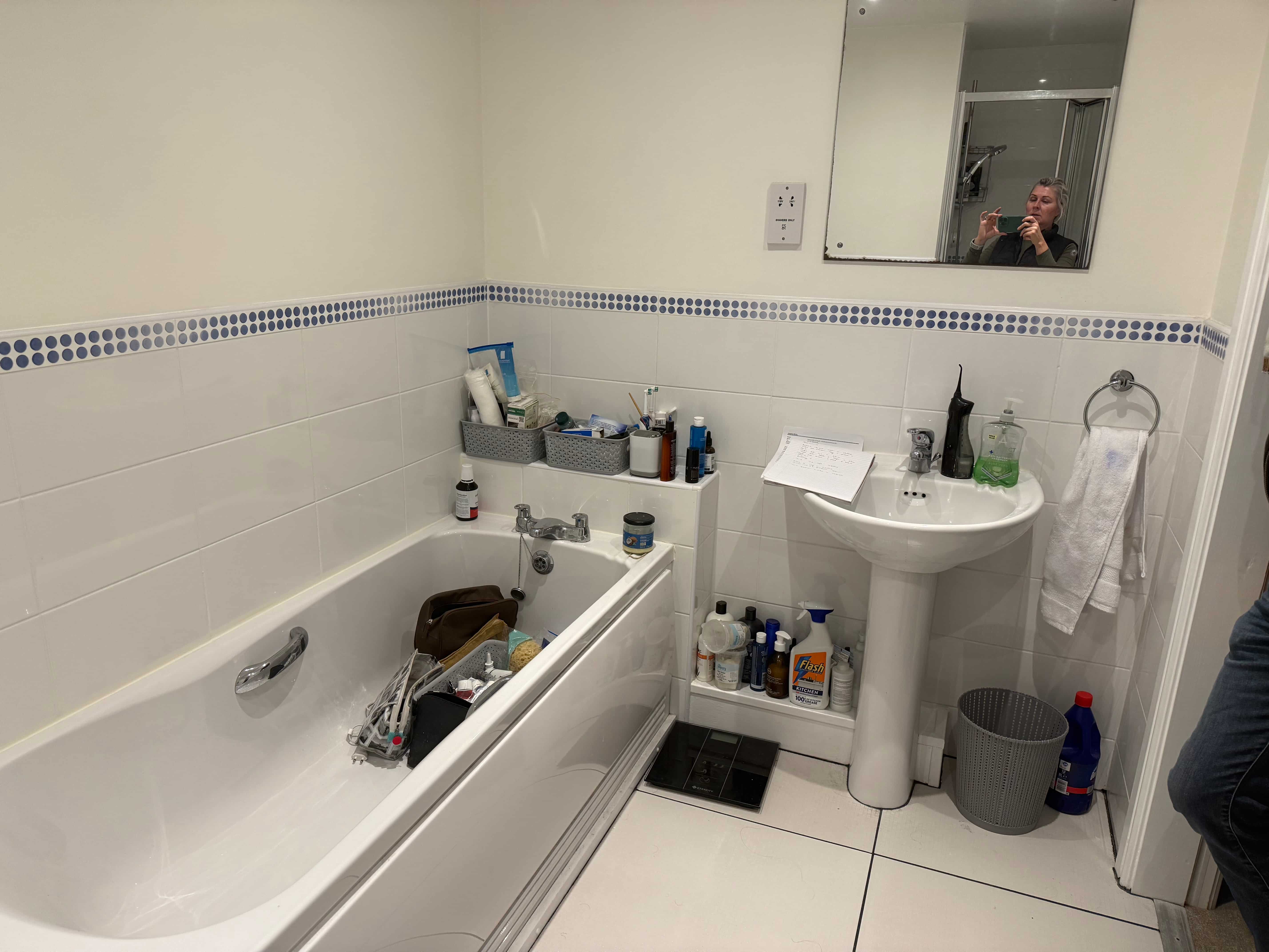 “The bathroom suite needed to come out so that we could repair the bathroom floor,” says Joanne, “and there was a separate shower cubicle that we would have to remove so that we could replace the damaged plasterboard behind it.”