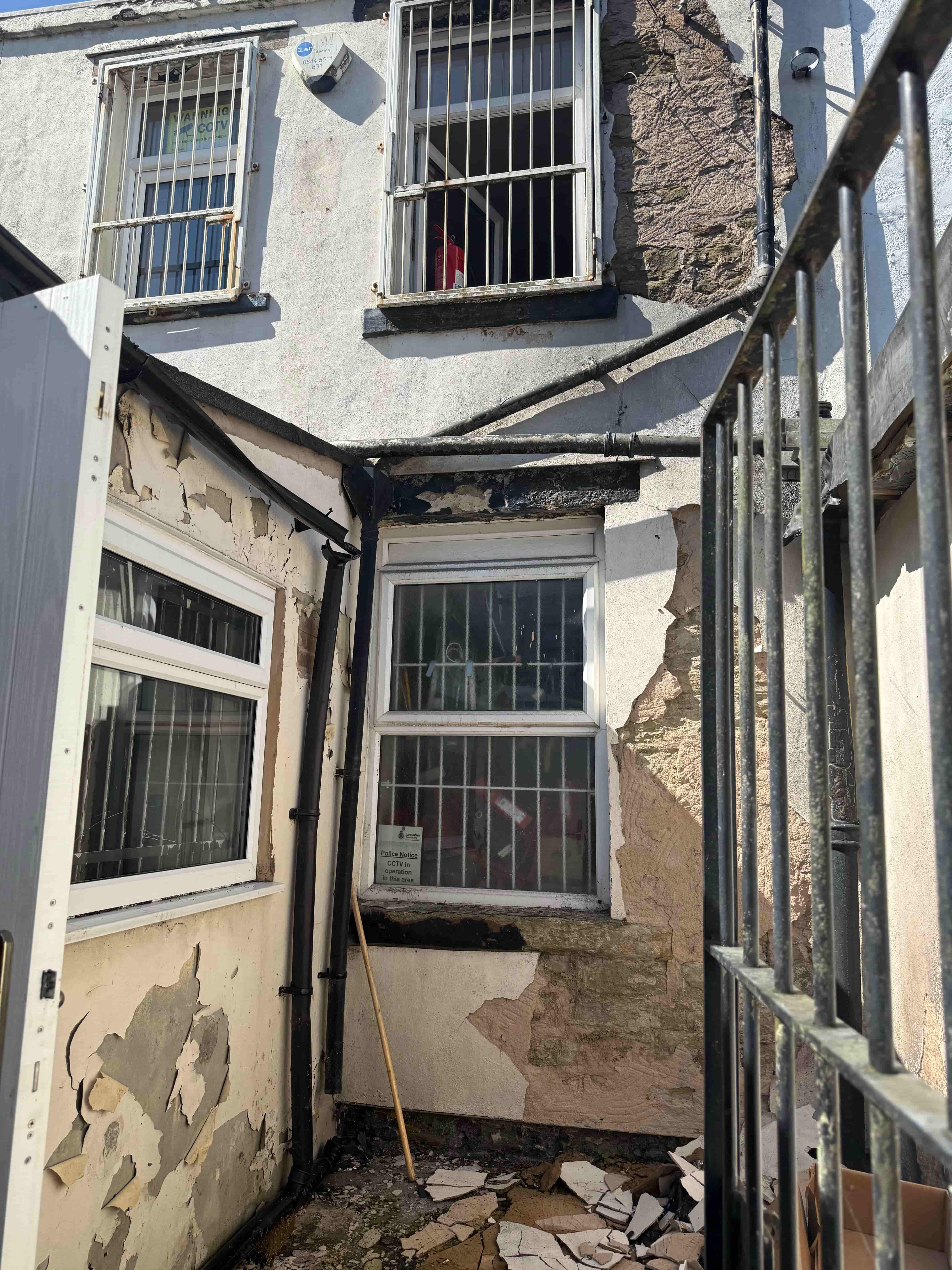 “We had to erect scaffolding, knock off the render, prepare the stone, re-render the back wall, and do some patch repairs to the outrigger,” says Joanne. “The fire had damaged the fascias, the guttering, and the rainwater downpipes, so we replaced those as well.